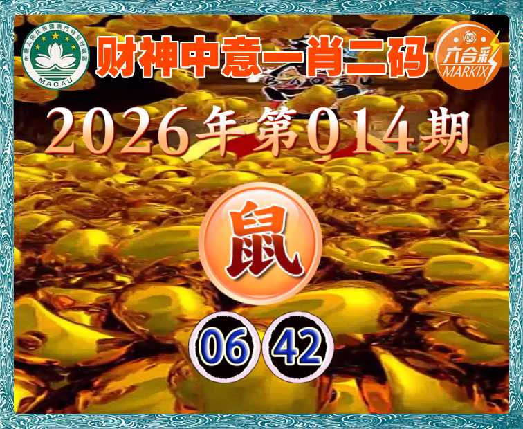 014期:『财神中意』 一肖二码【鼠】【06.42】开:龙26